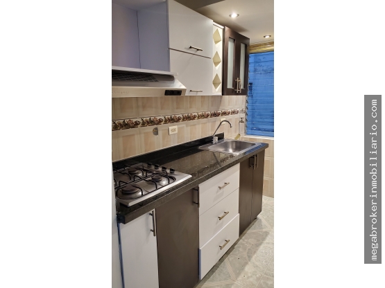 cuenta con tres habitaciones, la principal con baño, sala comedor, baño social con divisiones de vidrio, cocina integral y meson en marmol. parqueadero comunitario.